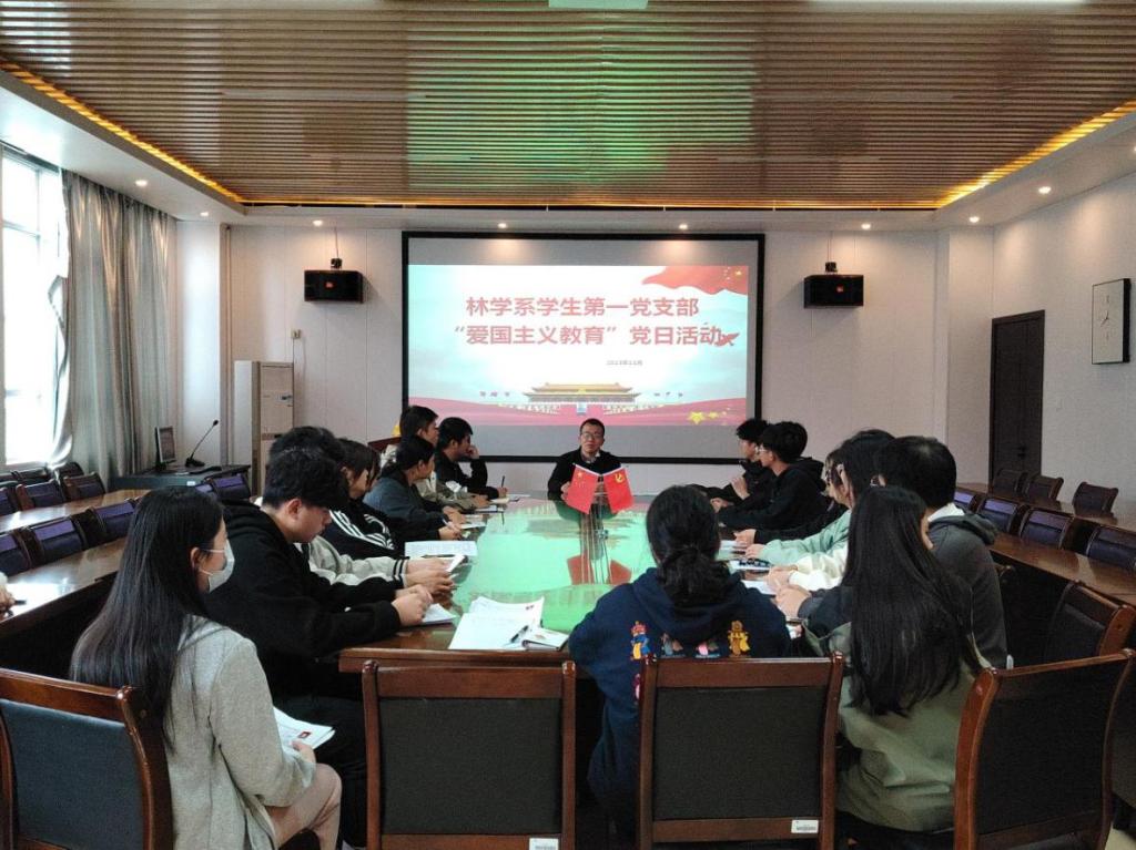 为进一步加强新时代爱国主义教育,传承和弘扬爱国主义精神,凝聚全面建设社会主义现代化国家、全面推进中华民族伟大复兴的磅礴力量,2023年11月29日林学系学生第一党支部开展“爱国主义教育”主题党日活动。本次会议由党支部书记叶知勇老师主持,支部全体同学参加。