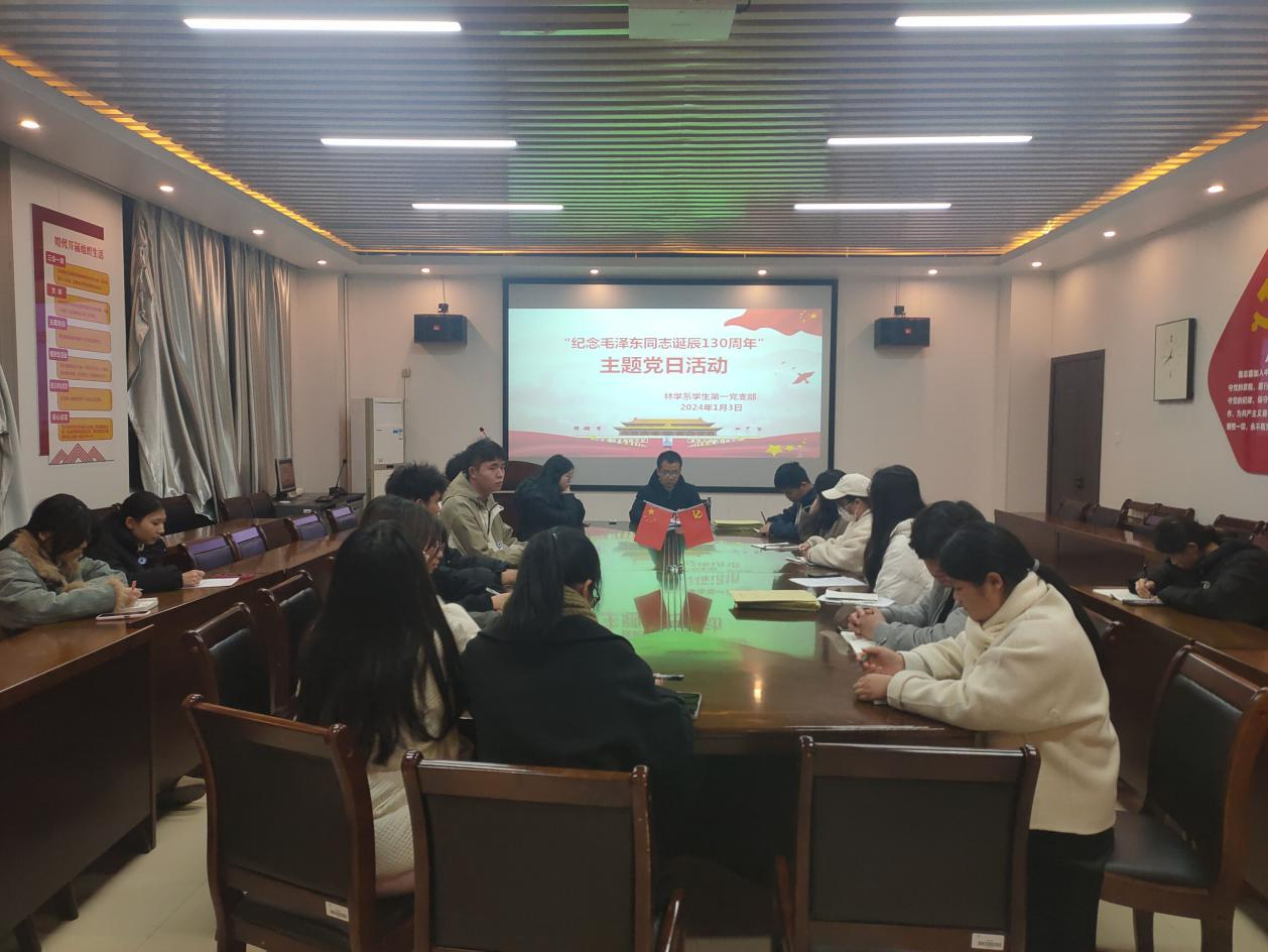 2024年1月3日,林学系学生第一党支部开展“纪念毛泽东诞辰130周年”主题党日活动,本次活动由支部书记叶知勇老师主持,支部全体同学参加。