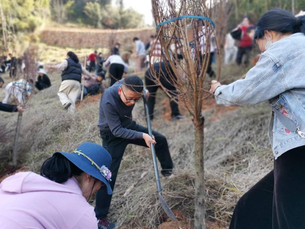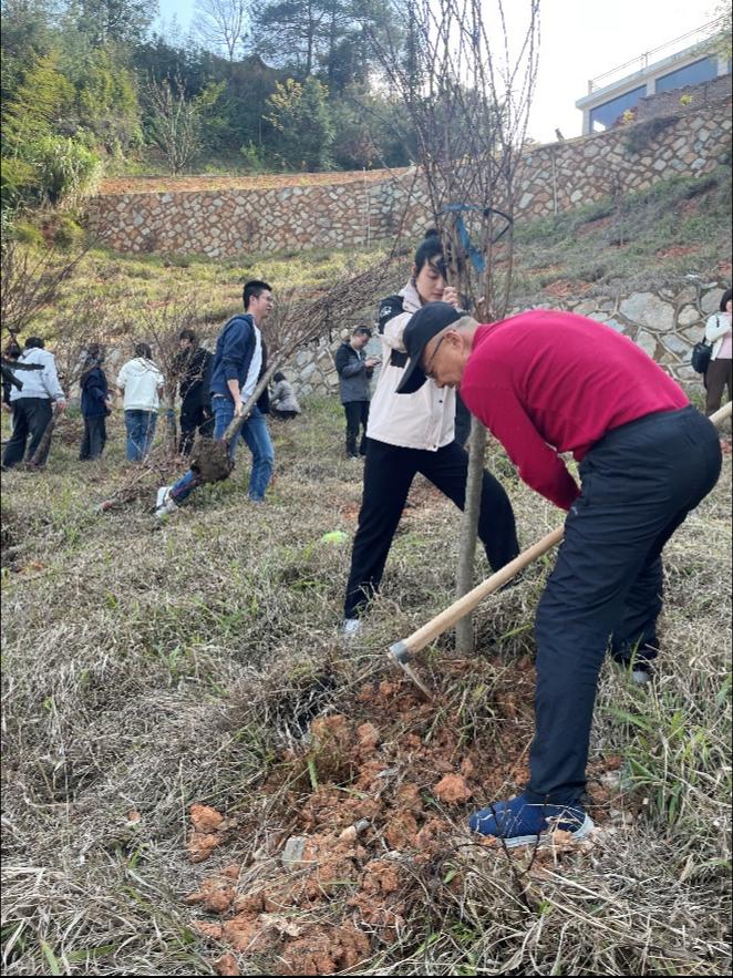 活动过程中,师生们满怀热情,配合无间,共同致力于绿化校园的行动。他们忙碌的身影在校园的每个角落都可见,将一棵棵树苗细心地植入新挖的土坑中。大家挥动锹铲,铲起新鲜的土壤,将树苗稳稳地扶正,再培土踩实,确保每棵树苗都能稳稳地扎根。随后,他们又忙着围堰浇水,让每一棵小树都能得到充足的滋润。教师党员团结协作,共同种下了25碧桃树,为实现校园的和谐美丽和育人环境的优化添砖加瓦,在大家的共同努力下,校园内的花草树木更加繁茂,道路更加整洁,建筑更加美观。