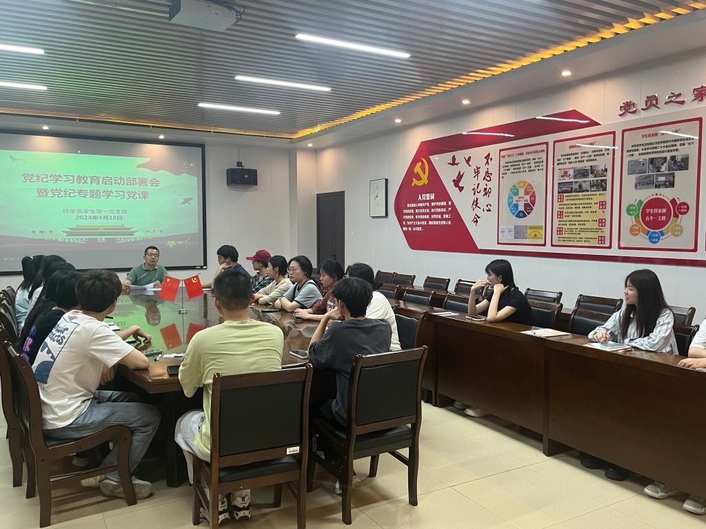 为深入贯彻学习《中国共产党纪律处分条例》(以下简称《条例》),进一步加强党支部纪律建设,纵深推进全面从严治党。4月18日,林学系学生第一党支部在林学楼会议室开展党纪学习教育启动部署会暨“学好用好条例,持续正风肃纪”主题党课,本次会议由支部书记叶知勇老师主持,支部全体成员参会。