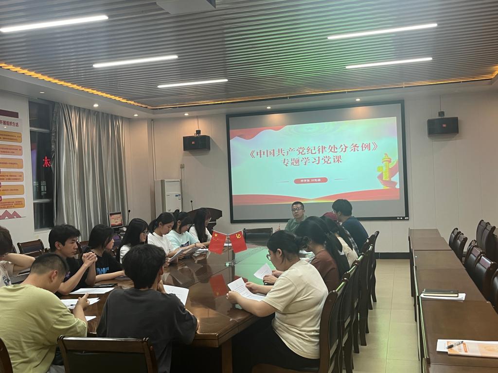 会议开始,叶知勇老师强调了学习《条例》的重要性,并对支部学习计划进行部署安排,以自学为主,培训为辅。要采用主题党日活动、“三会一课”等方式,逐章逐条学、联系实际学、以案促学、以训助学,确保党纪学习教育取得真正成效。