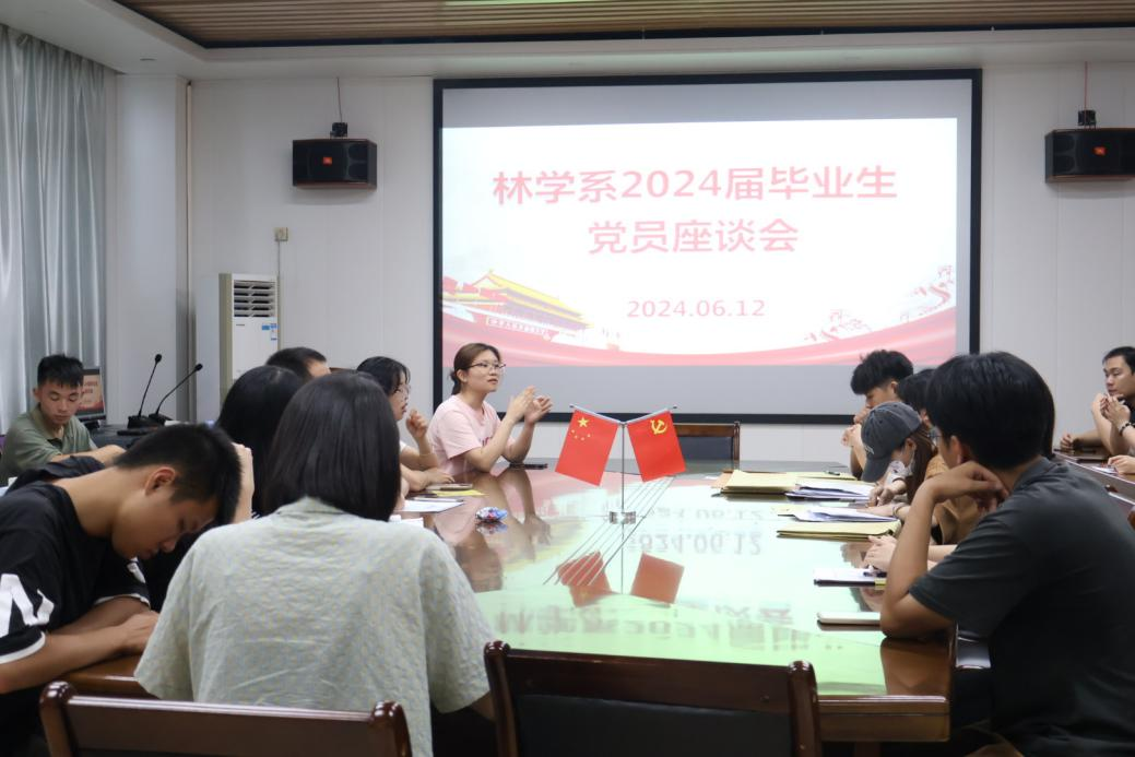 为进一步加强毕业生党员的纪律意识与党性修养,引导毕业生党员充分发挥党员先锋模范作用,以良好的精神风貌和饱满的工作热情走出校园、迈入社会,林学系党总支于2024年6月12日在林学楼会议室召开毕业生党员座谈会,毕业班辅导员、学生党支部书记以及全体2024届毕业生党员参加本次座谈会。