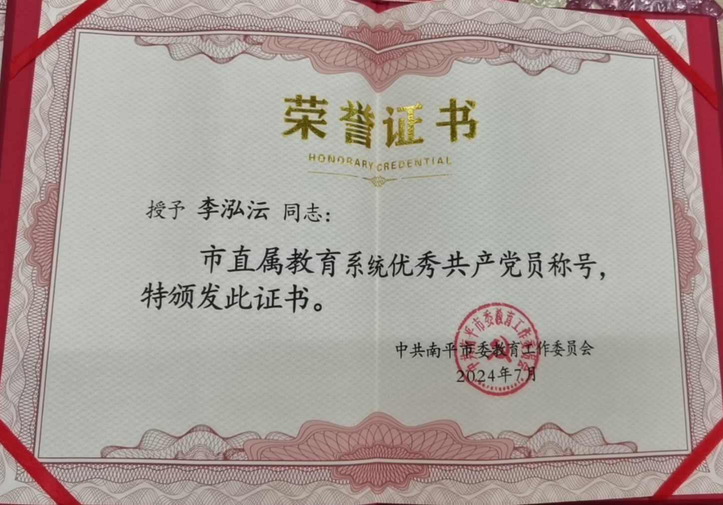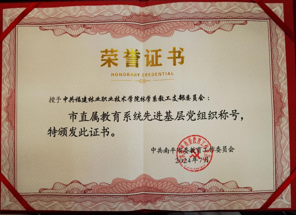 近日,林学系教工党支部获评“南平市直属教育系统先进基层党组织”称号;教师党员李泓沄同志荣获“优秀共产党员”称号。