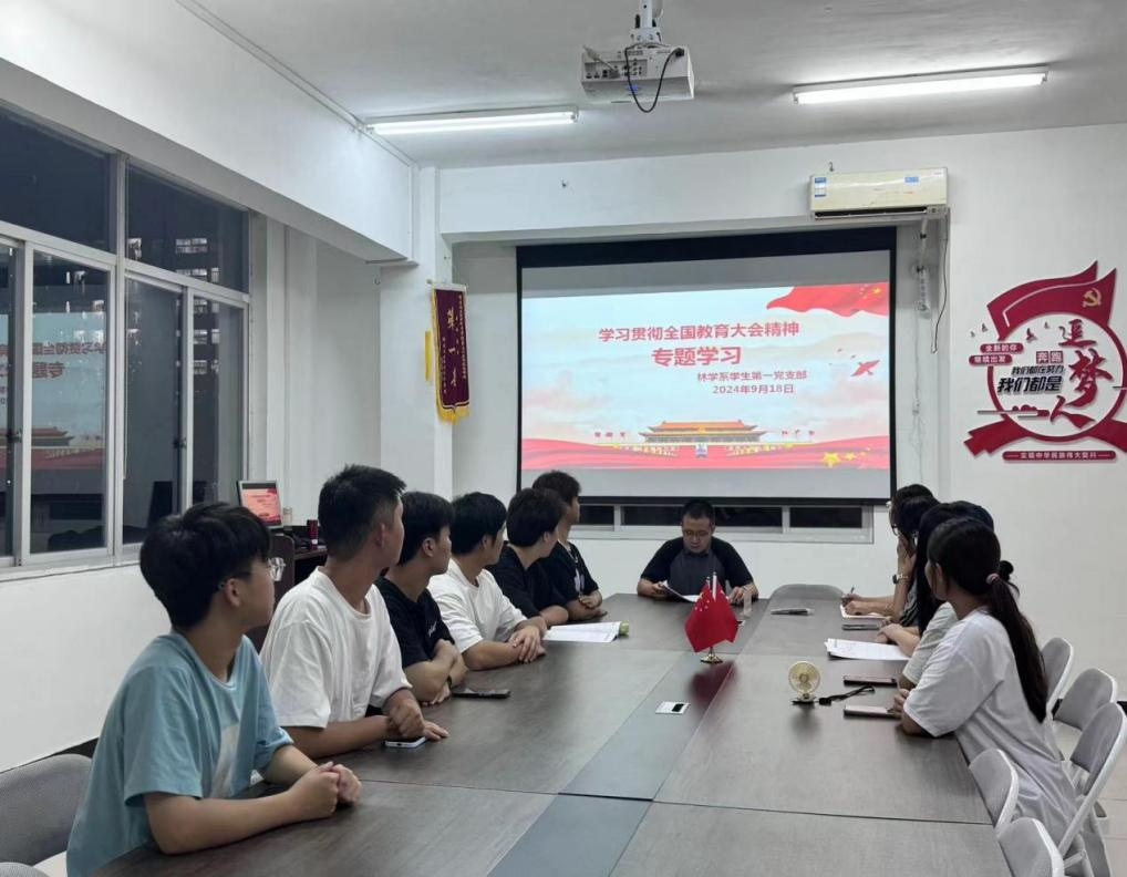 2024年9月9日至10日,全国教育大会在北京顺利召开,习近平总书记发表重要讲话。会议着重强调了教育是支撑国家强盛、党的事业兴旺发达的基石。为深入学习贯彻全国教育大会精神,林学系学生第一党支部迅速行动,于2024年9月18日开展专题学习。此次学习由叶知勇老师主持,支部全体同学参与。
