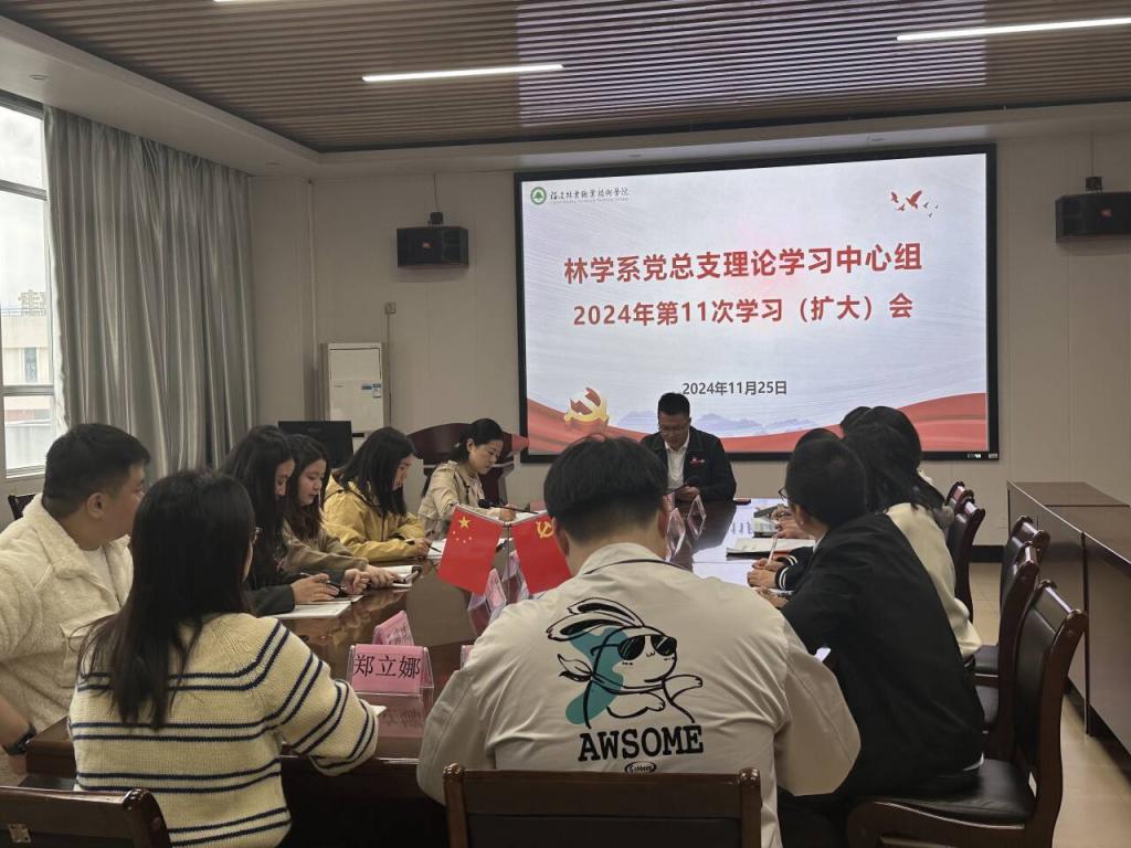 11月25日上午,林学系党总支召开理论学习中心组2024年第11次学习(扩大)会议。院党委组织部(统战部)部长李霞和宣传部综合科科长彭锦水巡听旁听了此次理论学习中心组学习。会议由党总支书记傅成杰主持,系部理论学习中心组成员、各党支部书记、全体辅导员参加了学习。