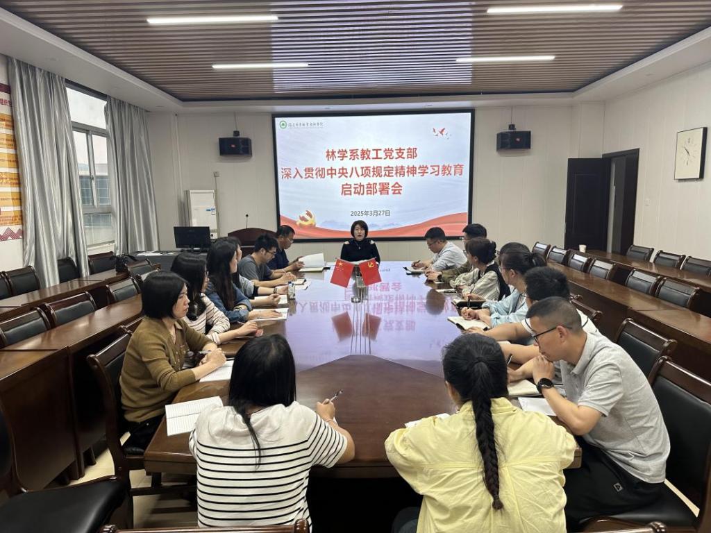 3月27日,林学系教工党支部召开党员大会,深入学习贯彻习近平总书记关于加强党的作风建设的重要论述,研究部署教工党支部深入贯彻中央八项规定精神学习教育工作。院党委书记陈建辉以普通党员身份参加会议并讲话。