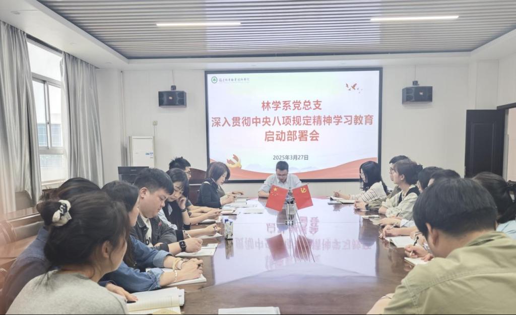 3月27日下午,林学系党总支召开深入贯彻中央八项规定精神学习教育启动部署会。系党总支书记傅成杰主持,林学系全体党员参加会议。