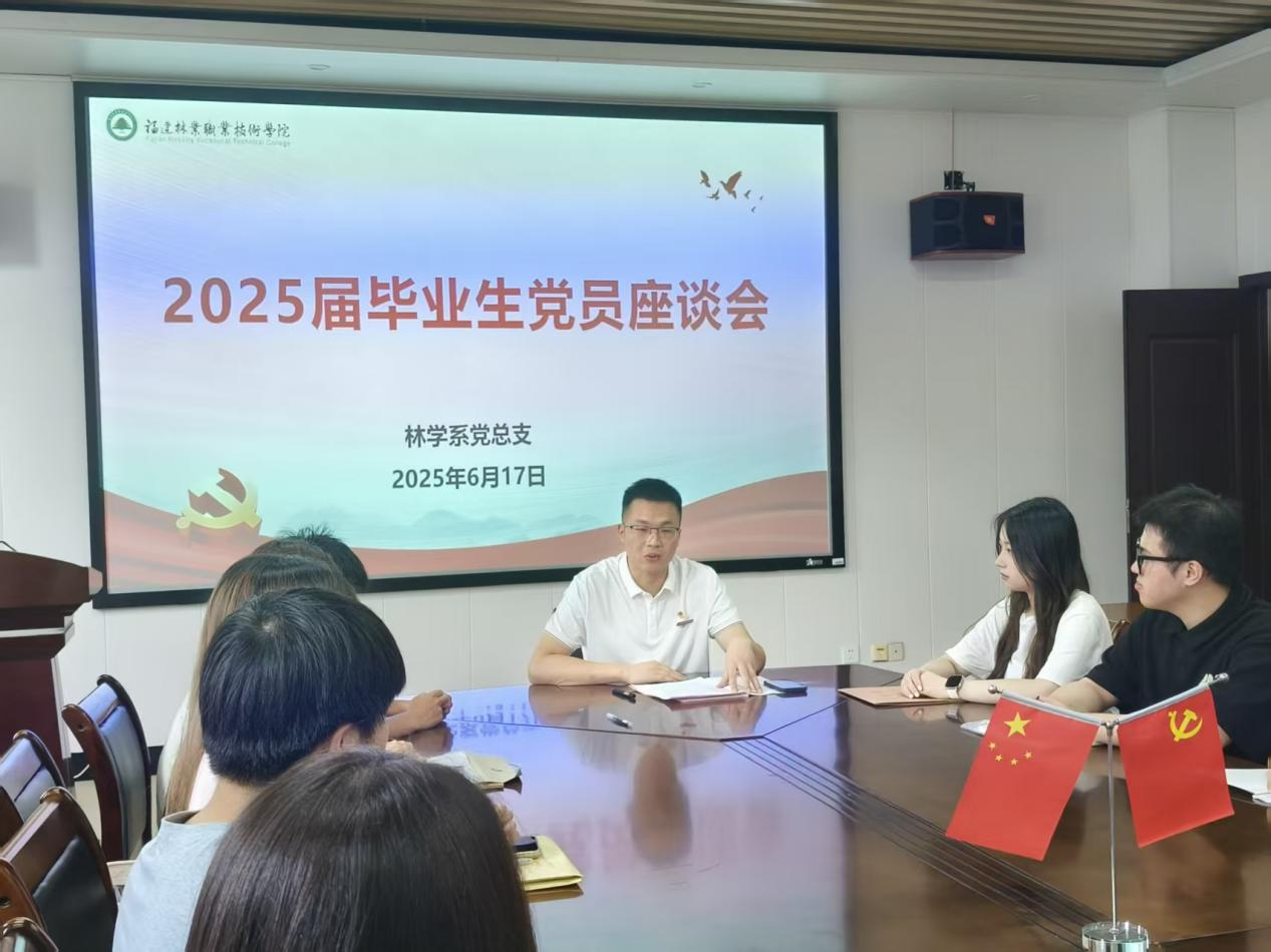 为深入了解毕业生党员思想动态,加强毕业生党员的思想教育管理与党性修养,引导其在新征程中严守纪律规矩、永葆清廉本色并发挥先锋模范作用,林学系党总支于2025年6月17日在林学楼会议室召开2025届毕业生党员座谈会。毕业班辅导员、学生党支部书记及全体毕业生党员参加了本次座谈。
