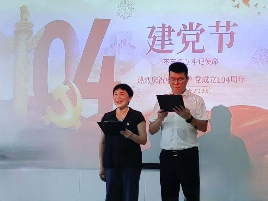 支部党员裘晓雯、谢行明两位同志带来配乐朗诵《颂歌献给伟大的中国共产党》。他们以饱满的热情和真挚的情感,歌颂了党的光辉历程和伟大成就,表达了全体党员对党的无限忠诚与热爱,赢得了现场阵阵掌声。