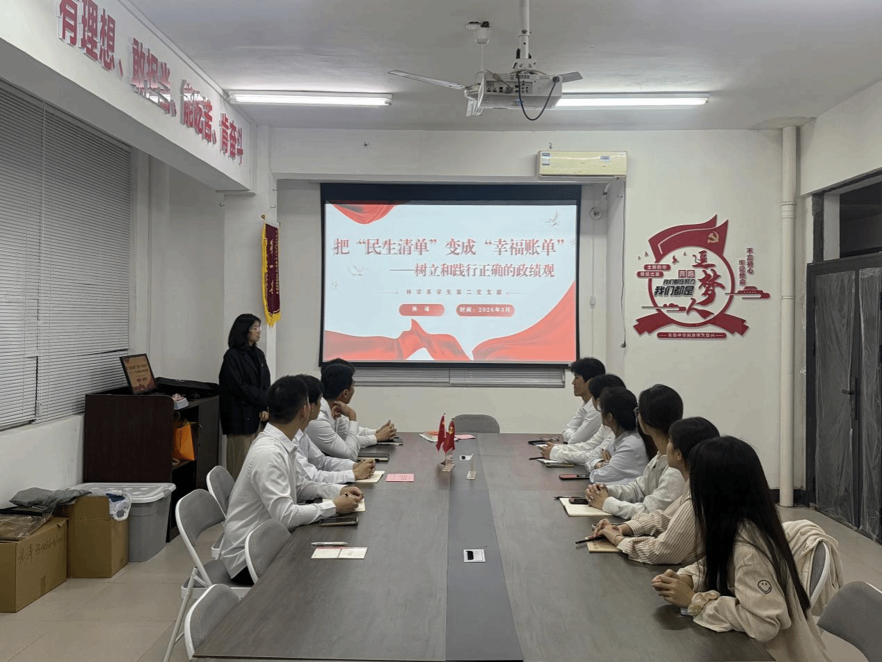 为深入学习贯彻习近平总书记关于树立和践行正确政绩观的重要论述,引导学生党员筑牢思想根基、明确责任使命,切实把思想和行动统一到党中央决策部署上来,2026年3月28日晚间,林学系学生第二党支部以“树立和践行正确的政绩观”为主题,为全体学生党员讲授专题党课,支部书记杨靖主持授课,全体学生党员参加学习。