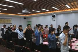 严绍裕副院长带领新教师作入职宣誓。与会院领导、部门领导也重温誓词。