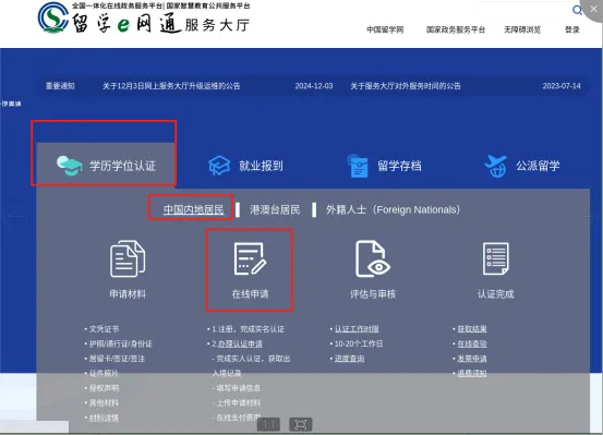 三、办理事项:点击留学e网通服务大厅,认真阅读填报须知后点击“确定”,点击右上角的登录按钮,未注册的用户先选择注册再登录,已有账号的用户通过输入账号密码进行登录。