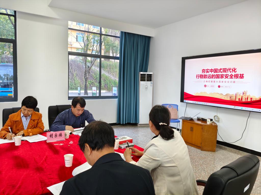 会议上由胡书记带领大家了解国家安全面临的各种威胁与挑战,就如何推进国家安全体系和能力现代化,以及夯实国家安全根基的根本途径展开具体解说。