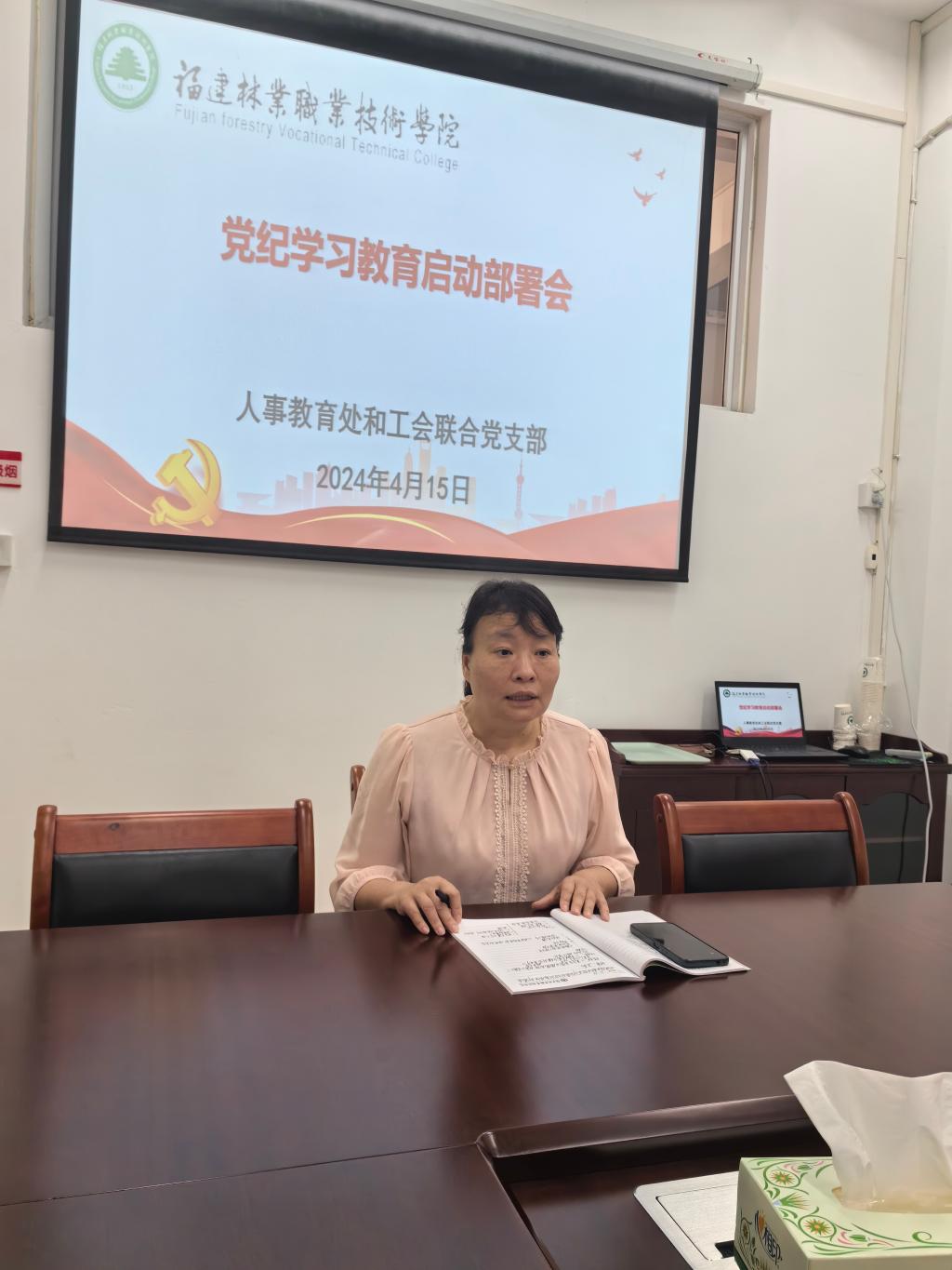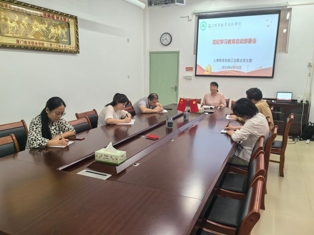 2024年4月15日,在总体国家安全观提出十周年、第9个全民国家安全教育日之际,人事教育处和工会联合党支部召开会议,传达了院党委扩大会议暨党的建设和全面从严治党工作领导小组会议内容,并深入学习了《中共中央办公厅关于在全党开展党纪学习教育的通知》。黄丽霞书记安排部署了支部党纪学习教育工作,支部全体党员参会。