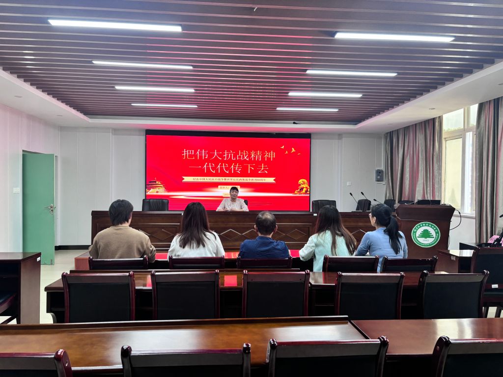 在纪念中国人民抗日战争暨世界反法西斯战争胜利80周年的重要历史时刻,为深切缅怀革命先烈,弘扬伟大抗战精神,汲取奋进力量,9月3日,人事处(教师工作部)和工会联合党支部举行专题党课学习活动。本次党课由党支部书记、人事处(教师工作部)处长黄丽霞同志主讲,主题为《把伟大抗战精神一代代传下去》。