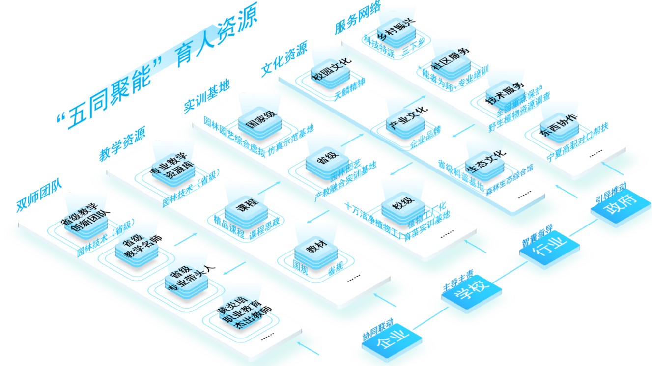 基于协同共生理论,聚焦服务福建园林产业创新发展,遵循“政府引导推动、行业智囊指导、学校主导主责、企业协同联动”原则,与福建省林业局、福建省花卉协会、福建金森集团等38家单位共建园林技术专业群建设指导委员会,明确“生态成材”育人理念,推进产业群-专业群-知识技能群对接,牵头成立福建省林业职教集团、园林园艺现代产业学院等多个产教融合平台,完善专业群共建、人才共培、质量共评、资源共享的互通共享机制,实现共融共生效果,助推园林产业高质量发展。