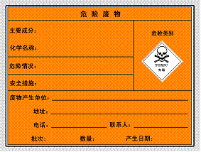 1、主要成分:填写废物种类及代码,如:实验室有机废液900-047-49,具体见上表中废物种类及代码。(代码一定要填,否则处置公司工人无法分类处置)