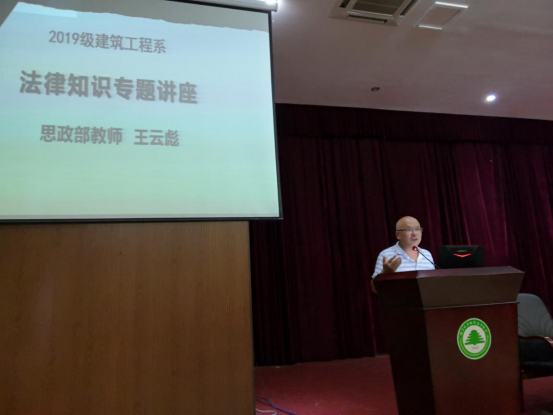 为切实推进我院文明校园、平安校园建设,深化建筑工程系法制宣传教育,预防校园欺凌,提高新生法律知识积累,增强自我防范意识。9月15日晚七点,思政部教师王云彪老师在江南校区礼堂为建筑工程系2019级新生开展“遵法守法,共同抵制校园欺凌”法律知识专题讲座,建筑工程系学工组成员及2019级全体新生到场聆听。