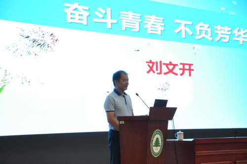 为进一步贯彻《教育部关于加强新时代高校“形势与政策”课建设的若干意见》和中共中央办公厅、国务院办公厅印发的《关于深化新时代学校思想政治理论课改革创新的若干意见》,落实领导干部为大学生讲思政课的制度,9月19日,院党委副书记、院长刘文开教授在江南校区学术报告厅为2019级学生上了以“奋斗青春,不负芳华”为题的第一堂思政课。来自林学系和园林系的全体大一新生及思政部全体教师聆听了此次课程。