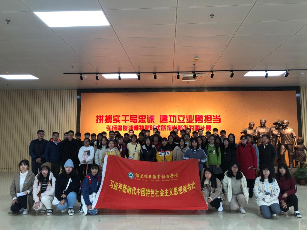 为扎实推进“不忘初心 牢记使命”主题教育活动的开展,将中华优秀传统文化的人文精神、道德底蕴融入到理论学习中,12月7日,思政部和院直属第四党支部组织习近平新时代中国特色社会主义思想读书社前往南平市建阳区廖俊波纪念馆及考亭书院开展现场实践教学活动。思政课教师杜彩银老师、王鹏鹏老师、胡斌老师以及两校区班主任李玲老师、李佳老师和读书社五十余名学员参加了此次活动。
