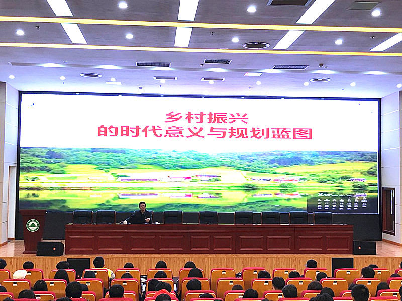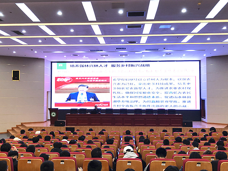 12月23日晚,叶世森副院长在江南校区图书馆学术报告厅为林业技术1901等班级、习近平新时代中国特色社会主义思想读书社成员和思政部教师300余人上了题为“乡村振兴的时代意义与规划蓝图”的形势与政策课。
