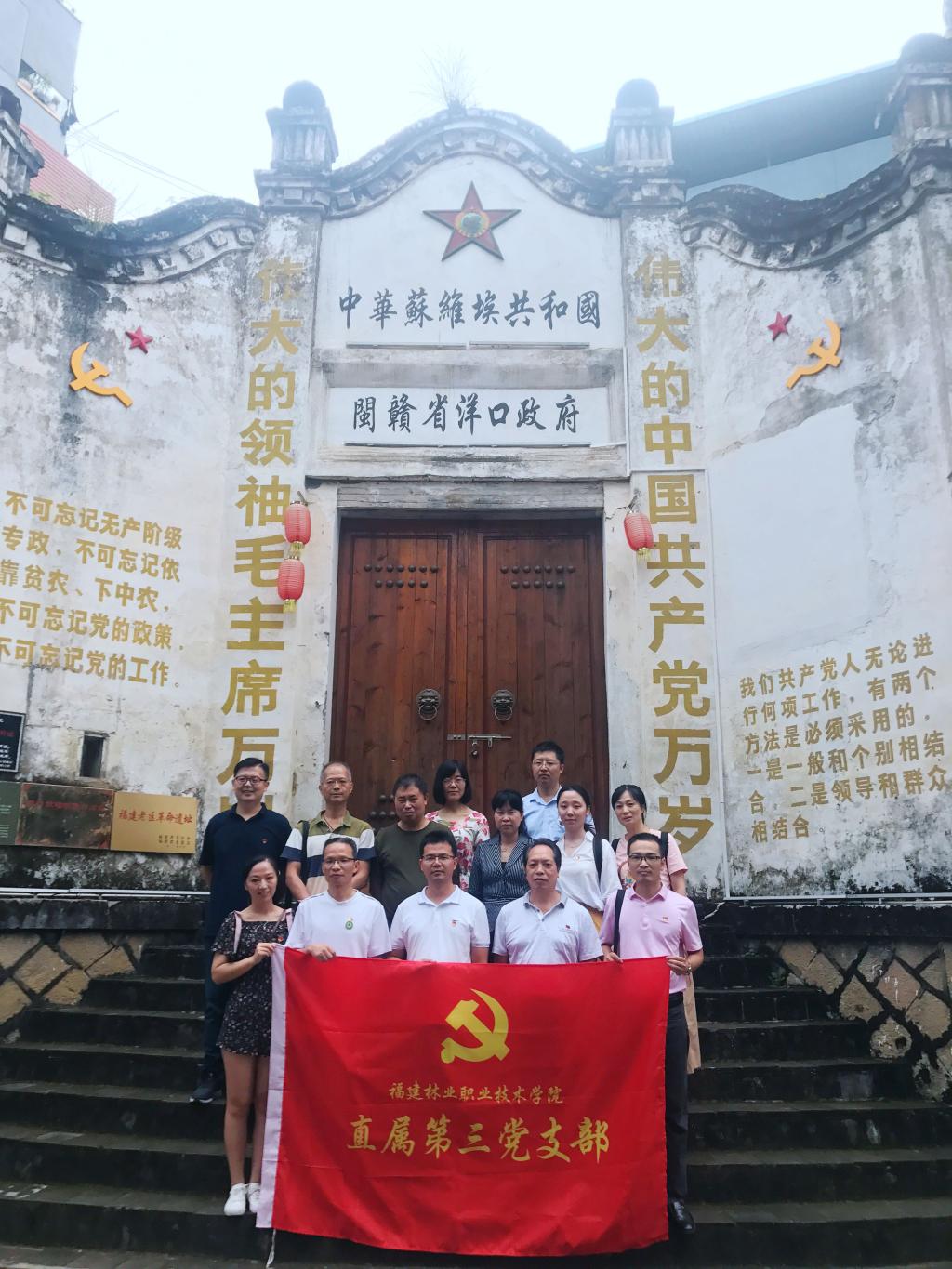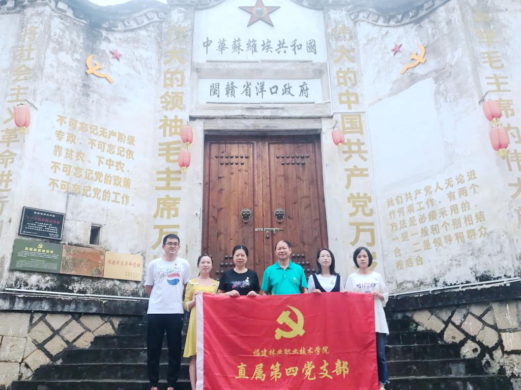 为庆祝中国共产党成立99周年,深切回顾党的光辉历程,牢记党的初心和使命,推动党员干部传承红色基因,弘扬革命精神,加强党性教育,2020年9月22日,福建林业职业技术学院第四党支部联合直属第二、第三党支部、组织全体党员前往南平市顺昌县洋口镇开展“探寻红色足迹,践行红色使命”主题党日活动。通过缅怀革命先辈,学习老一辈无产阶级革命家的光辉业绩和崇高风范,激励广大党员坚定理想信念、增强服务意识,立足岗位,主动担当,以更饱满的热情、更务实的作风,干好本职工作。