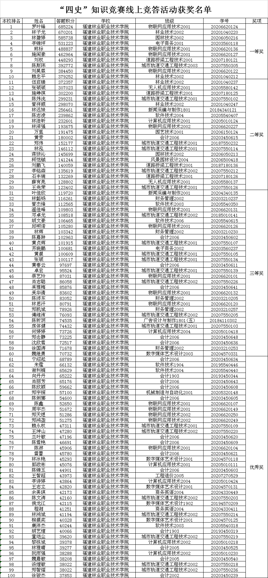 在全院师生的共同努力下,“四史”知识竞赛线上竞答活动顺利完成,取得良好成效,参加学生数达4744名,并对在竞答中取得全院前100名进行表彰。