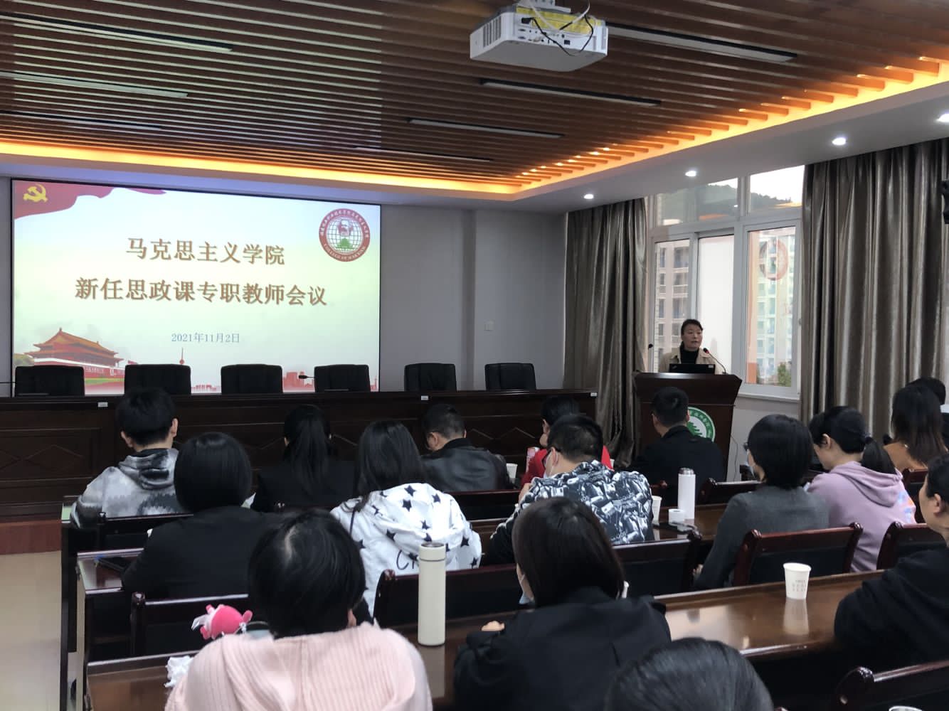 宣誓结束后,马克思主义学院教务科长李佳组织新入职教师共同学习了《退出专职思想政治理论课教师队伍实施办法》《院领导联系思想政治理论课教师的实施办法》等文件精神。