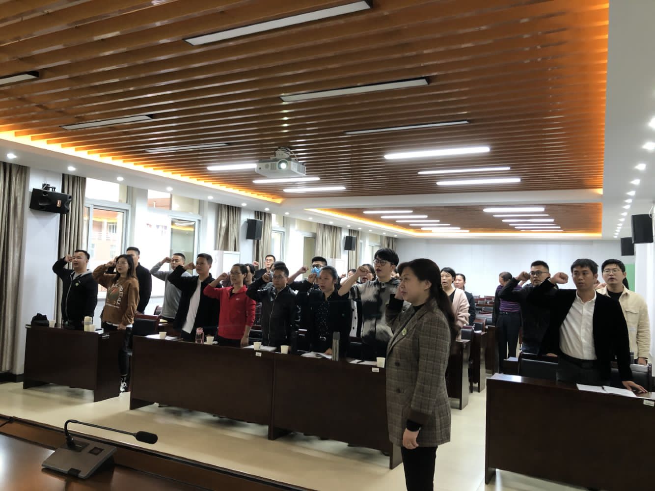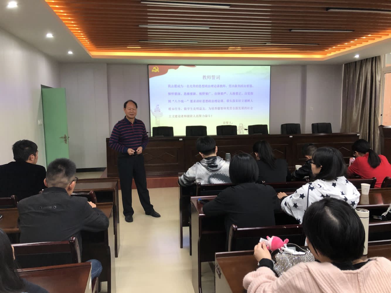 会上,首先由人事教育处黄丽霞宣读了学院关于陈静等22名新任职思政课专职教师的决定。之后杜彩银副教授带领新入职教师庄严许下誓言:“我志愿成为一名光荣的思想政治理论课教师,坚决做到政治要强、情怀要深、思维要新、视野要广、自律要严、人格要正。自觉按照“八个统一”要求讲好思想政治理论课,带头落实好立德树人根本任务,做学生良师益友,为培养德智体美劳全面发展的社会主义建设者和接班人而努力奋斗!”。