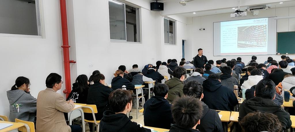 活动1:党委副书记、马克思主义学院分管领导严绍裕走进江南校区实训四708教室建筑工程技术2103、2104班听取周偎老师讲《思想道德与法治》课。