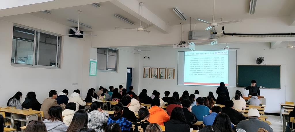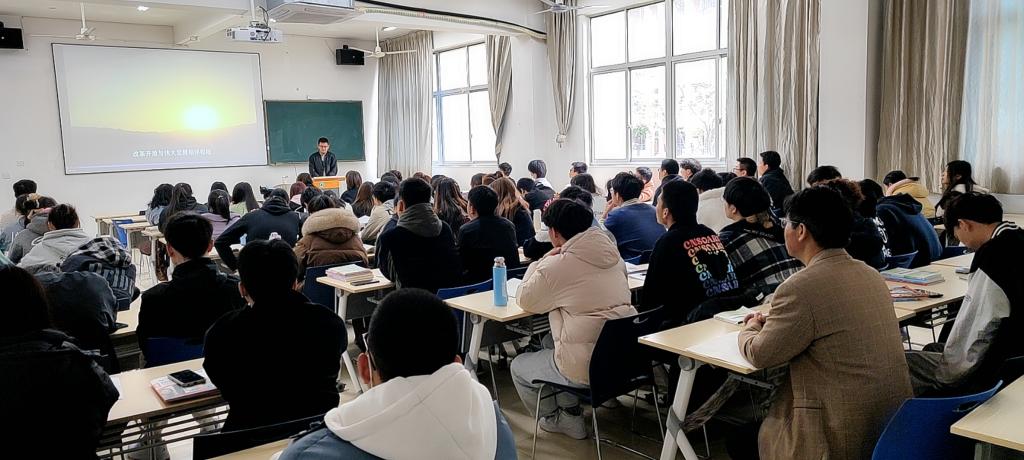 活动2:党委副书记、马克思主义学院分管领导严绍裕走进江南校区实训四310教室食品药品监督管理2021、班听取朱友城老师讲《形势与政策》课。