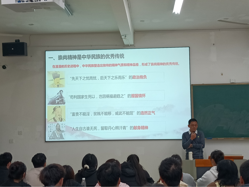 为提升教师教学业务水平,增强思政课教师《思想道德与法治》课程教学效果,12月7日下午,马克思主义学院教师李佳在实训四208教室开设题为“中国精神是兴国强国之魂”的公开课,全体专兼职思政课教师到场观摩学习。