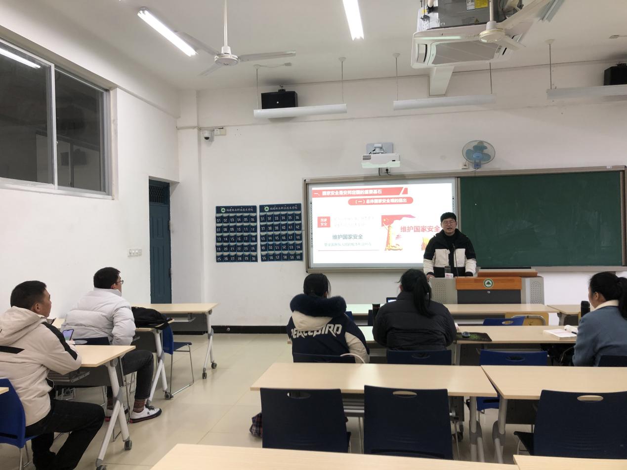 此次集体备课由今年的新进教师张少伍进行片段教学,试讲概论课“第十二章 实现中华民族伟大复兴的重要保障”中的“第一节 坚持总体国家安全观”。张老师从安全话题着手进行课堂调研,由身边的小安全引申至国家的大安全,由传统安全引申至当下的总体安全。随着经济社会的发展,国家安全的外延和内涵不断延伸,国家在维护国家安全方面也提出了许多的新对策、新理念,从而形成了总体国家安全观,列举案例来解释新时代我国面临的国家安全的形式异常严峻,从而引申至我们必须坚持总体国家安全观,它顺应了人民对于国家安全的新期待,国家发展对于国家安全的新要求和世界发展变化的新趋势。