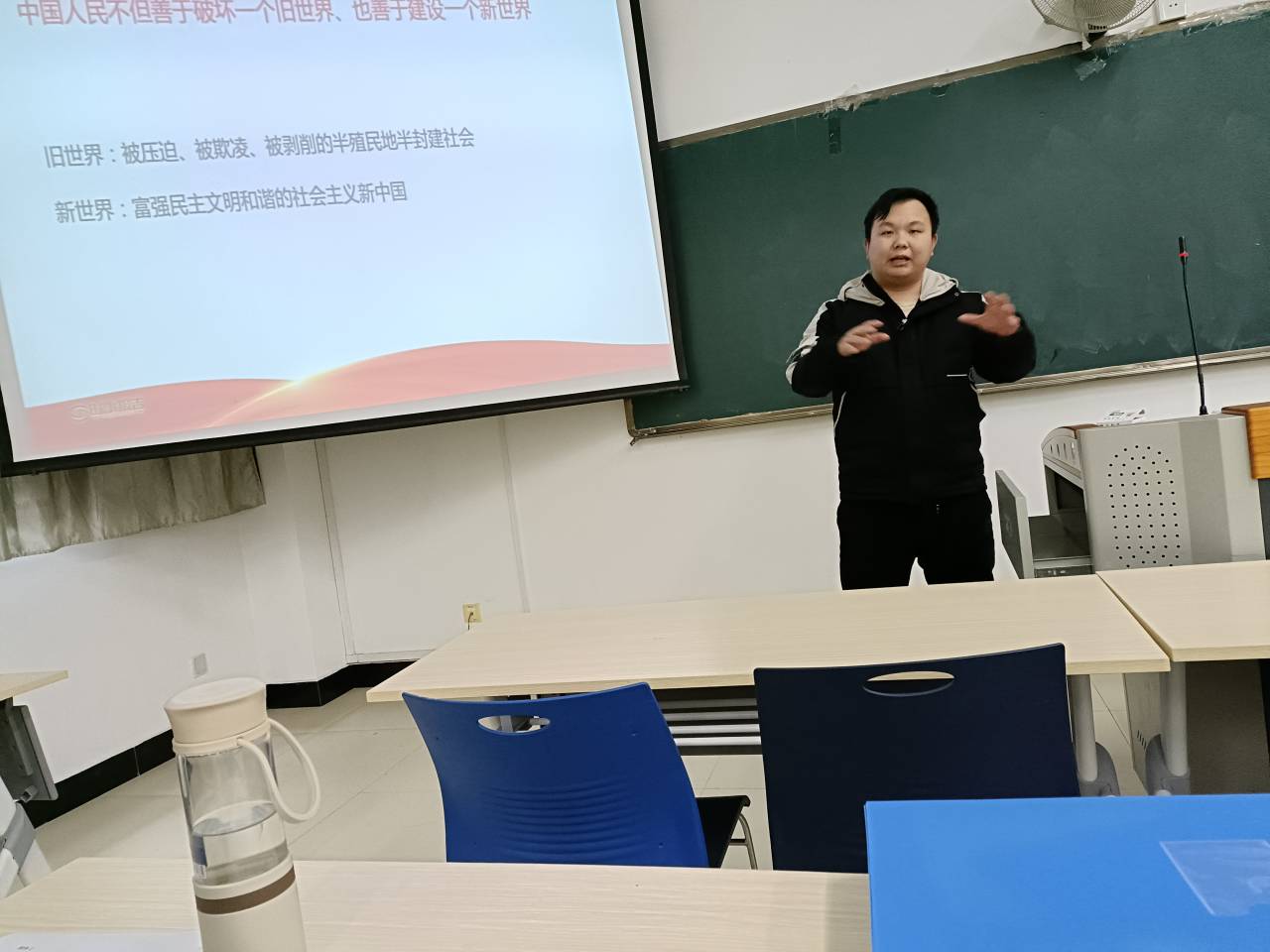 此次集体备课由周偎老师进行展示,对《形势与政策》第一讲“百年奋斗谋复兴 勇毅前行兴伟业”进行片段教学。他由十九届六中全会入手,通过阐述中国共产党百年历史中的三大历史性决议,在介绍党在新民主主义革命时期、社会主义革命和建设时期、改革开放和社会主义现代化建设时期以及新时代中国特色社会主义时期这四个阶段的主要矛盾和主要任务,集中说明一个道理:中国人民不但善于破坏一个旧世界、也善于建设一个新世界;只有社会主义才能救中国,只有社会主义才能发展中国。