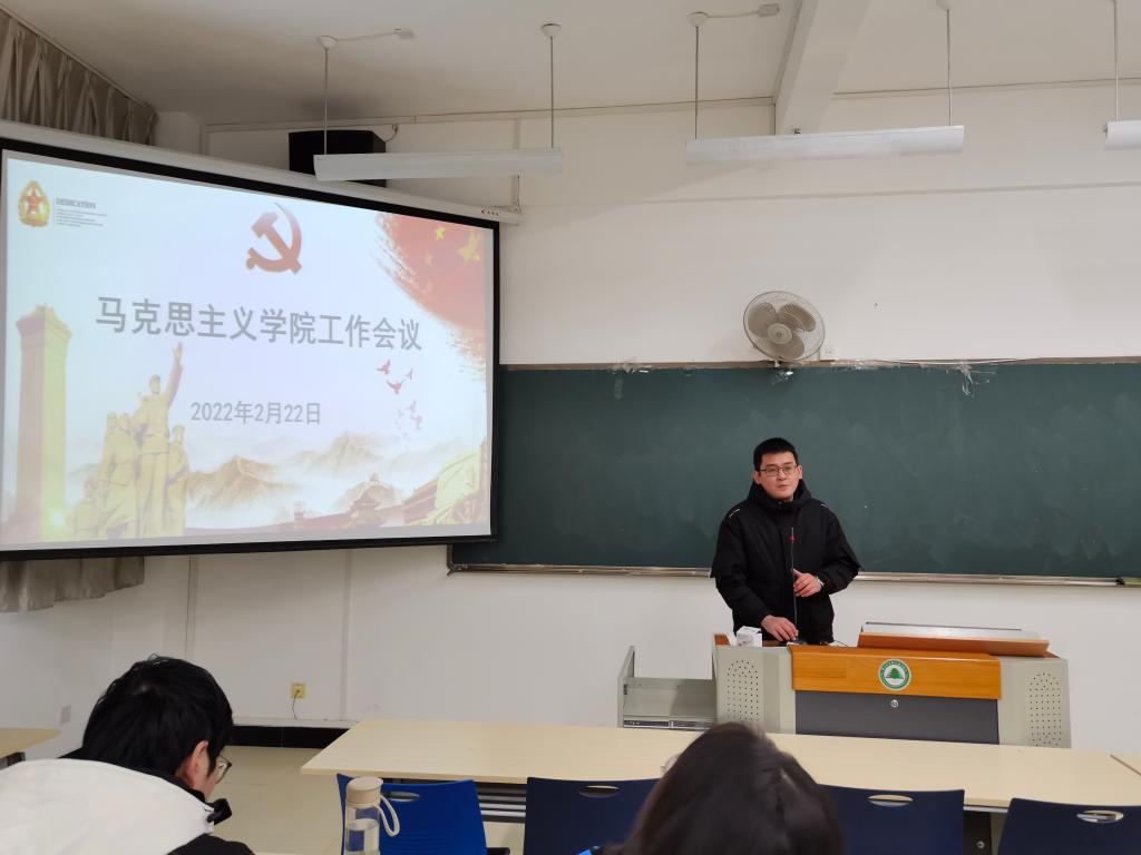 2022年2月22日下午,马克思主义学院于江南校区实训四211组织召开新学期工作部署会议,会议由马克思主义学院教务科长李佳主持,马克思主义学院院长郭先根出席会议,全体思想政治理论课教师参加。