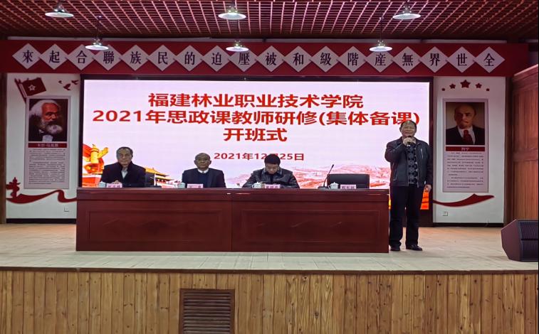 在开班式上,校党委书记万泉教授首先代表福建林业职业技术学院党委和行政对为本次活动付出辛勤劳动、热情周到服务的武夷山党校表示衷心感谢,向来自闽北职业技术学院等兄弟院校的老师们表示热烈欢迎,并提出三点希望:第一,要端正态度、认真研学。专心致志学、深入研讨学、联系实际学,真正实现学有所思、思有所悟、悟有所得,并将学习收获转化为今后工作的行动自觉、教学成效;第二,要让有信仰的人讲信仰。理论千万条,马克思主义信仰第一条,马克思主义信仰的程度绝不会与学历的高低天然成正比,马克思主义的真本领也绝不会与职务头衔天然成正比,思政课教师要在大安这块红色土地上汲取信仰之钙;第三,要学会将革命理论讲成鲜活故事,让真理从课本走出来、活起来,让课堂更具感染力、说服力,实现教师真教、教真,学生真懂、真信、真用。