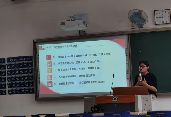活动中,毛泽东思想和中国特色社会主义理论体系概论课教研室主任李玲老师围绕运用理论讲学和实践教学两种途径,强调教学过程应该围绕“三个结合”出发,以“习近平新时代中国特色社会主义思想创立的社会历史条件”的相关内容举例说明,根据学生的具体学情,从“教材分析、学情分析、教学目标、教学重难点、教学方法、教学过程、教学建议”七个方面进行讲解,引导学生认识新时代,培养学生自主学习兴趣,为学生营造良好的课堂教学氛围。