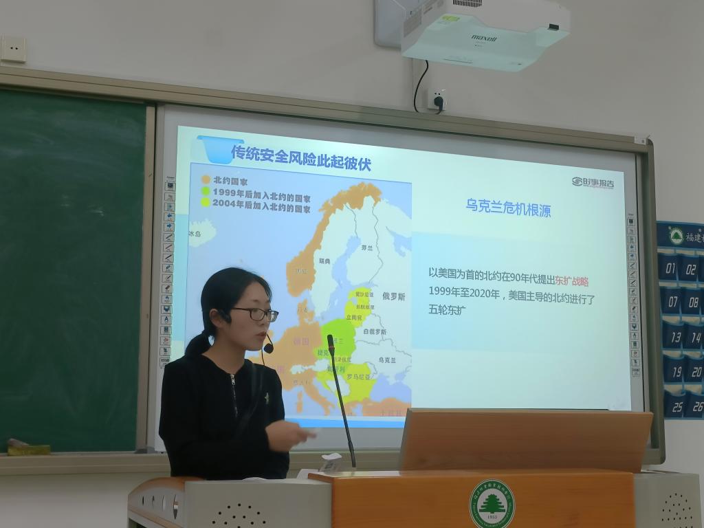 朱丽云老师针对认清安全问题之因部分,从以美国主导的北约组织加剧全球阵营对抗,分析了当前国际形势不稳定因素存在的原因。