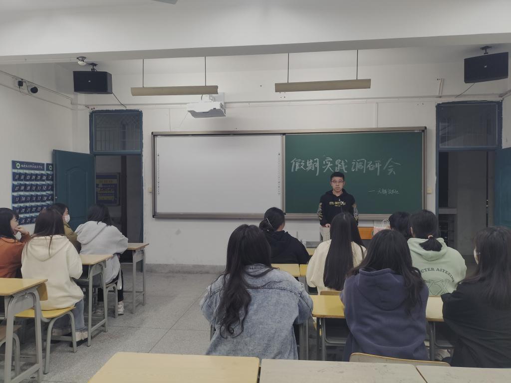 2023年3月6日晚,我院习近平新时代中国特色社会主义思想读书社在科教楼902室开展假期调研汇报会。会议由读书社班主任俞玥老师主持,全体学员参加。