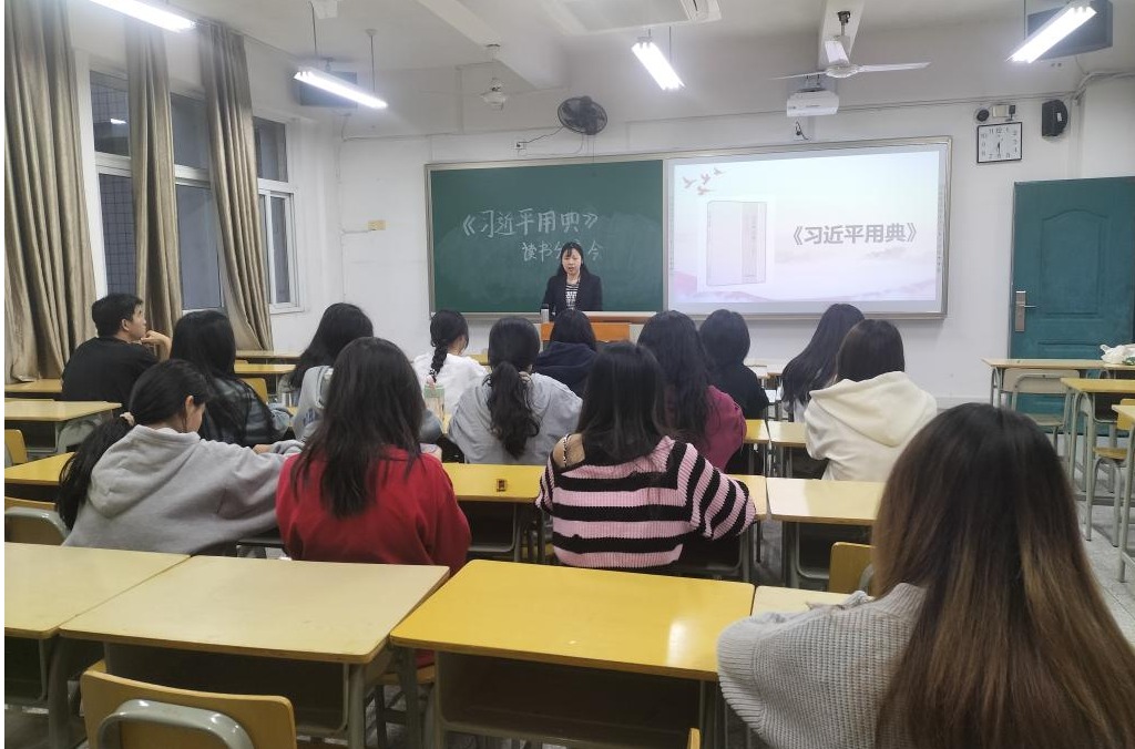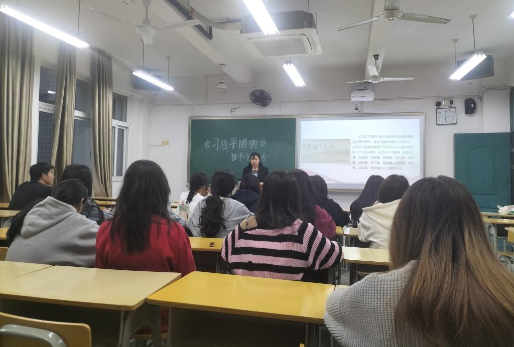 2023年5月26日晚,我院习近平新时代中国特色社会主义思想读书社在科教楼403教室开展《习近平用典》读书分享会。会议由读书社班主任俞玥老师主持,全体学员参加。
