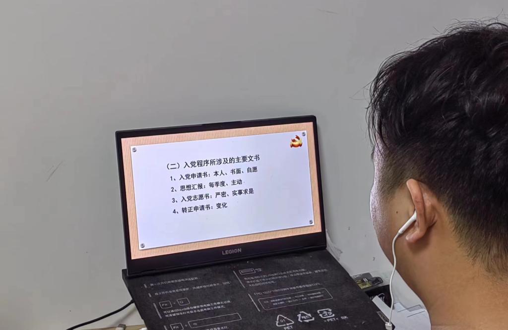 入党积极分子培训班采取直播授课、个人自学、理论测试等方式进行。培训学员通过观看专题直播课学习如何做一名合格的共产党员,通过自学《中国共产党章程》,进一步熟悉党章、遵守党章、维护党章,深化对党的认识,提升其党性修养。