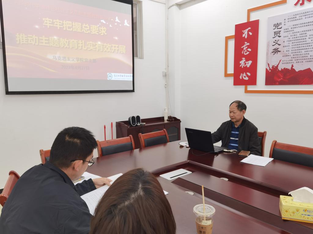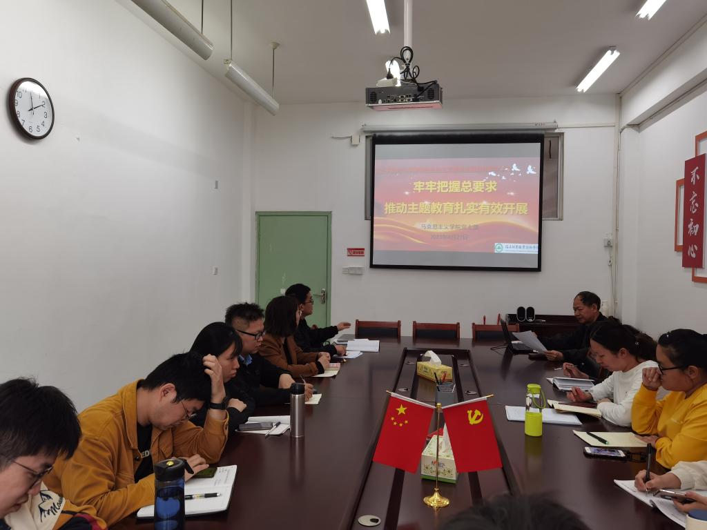 为扎实开展学习贯彻习近平新时代中国特色社会主义思想主题教育,按照党中央部署要求和学院党委主题教育工作安排,4月27日,马克思主义学院党支部组织开展学习贯彻习近平新时代中国特色社会主义思想主题教育工作会议精神专题学习会。会议由马克思主义学院党支部书记郭先根同志主讲,全体党员参加。
