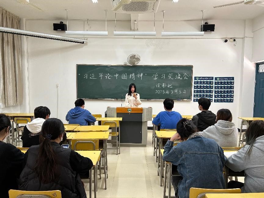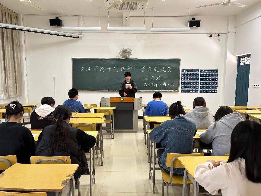 2023年3月5日下午,学院习近平新时代中国特色社会主义思想读书社在教学楼511教室组织开展学习“习近平论中国精神”分享交流会活动。