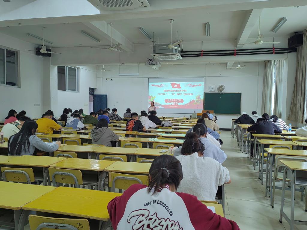 为深入学习习近平新时代中国特色社会主义思想和党的二十大精神,切实推进习近平新时代中国特色社会主义思想进教材、进课堂、进学生头脑,对标党中央开展学习贯彻习近平新时代中国特色社会主义思想主题教育有关要求,以学习“二十大精神”、“马克思主义理论”为主线,2023年5月9日下午,马克思主义学院举办2023年“一‘马’当先”知识竞赛活动。