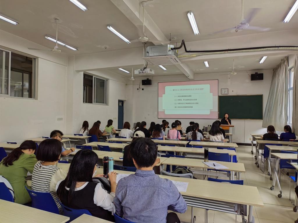 4月3日,学习贯彻习近平新时代中国特色社会主义思想主题教育工作会议召开,习近平总书记强调,“我们要以这次主题教育为契机,加强党的创新理论武装,不断提高全党马克思主义水平,不断提高党的执政能力和领导水平”。为深入开展主题教育,思政课落实立德树人根本任务,推进习近平新时代中国特色社会主义思想进教材进课堂进头脑,进一步提升我院思政理论课教师教学能力和水平,5月16日下午,习近平新时代中国特色社会主义思想概论课教研室于教学楼208开展院级公开课活动,马克思主义学院全体思政课教师参与本次公开课的听课与评课。