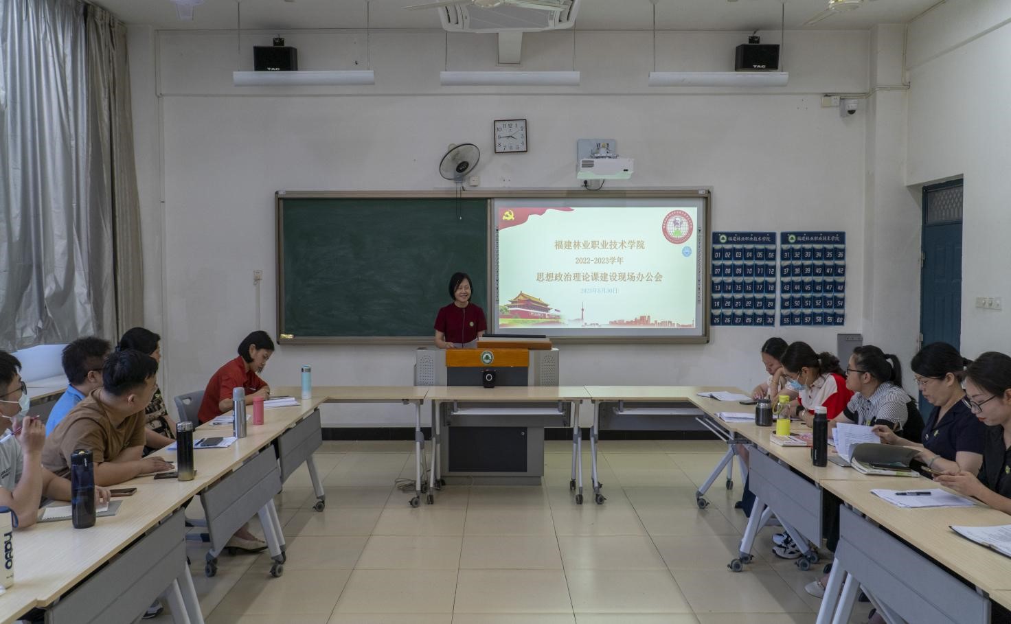 为深入学习贯彻落实党的二十大精神和习近平总书记关于办好思政课的重要论述,坚持不懈用习近平新时代中国特色社会主义思想凝心铸魂,切实发挥思政课落实立德树人根本任务关键课程作用,推动马克思主义学院高质量内涵式发展,5月30日下午,福建林业职业技术学院召开2023年思想政治理论课建设现场办公会。院党委副书记、院长刘文开,院党委副书记严绍裕,教务处处长黄云玲以及马克思主义学院全体思政课教师参加会议。