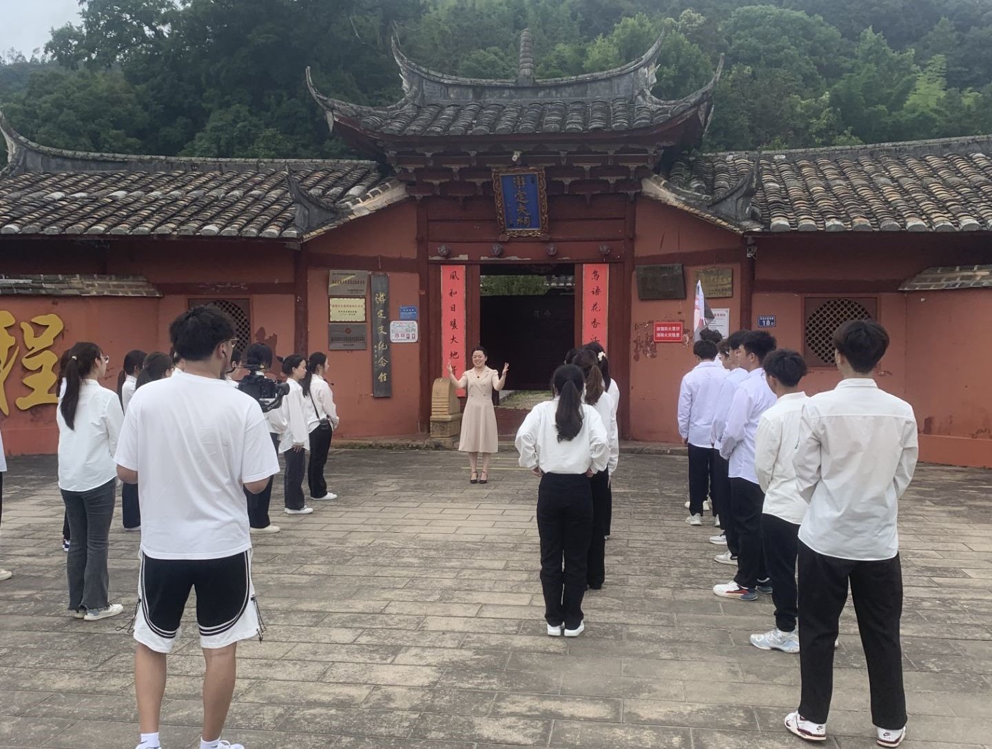 活动当天,马克思主义学院汪秀霞、李玲、于蓓蓓、朱友城四位教师带领旅游管理、林业技术、建筑室内设计等专业学生来到“游定夫纪念馆”进行传承中华传统美德,践行职业道德现场教学。