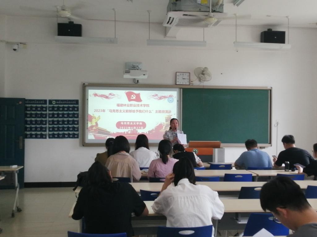 为深入学习贯彻落实习近平新时代中国特色社会主义思想和党的二十大精神,切实推进习近平新时代中国特色社会主义思想进教材、进课堂、进学生头脑,同时响应省教工委领航计划系列主题活动及福建林业职业技术学院“技能成才 强国有我”技能文化活动。6月27日,马克思主义学院举办的“马克思主义能给予我们什么”主题微演讲比赛在江南校区教学楼201举行。