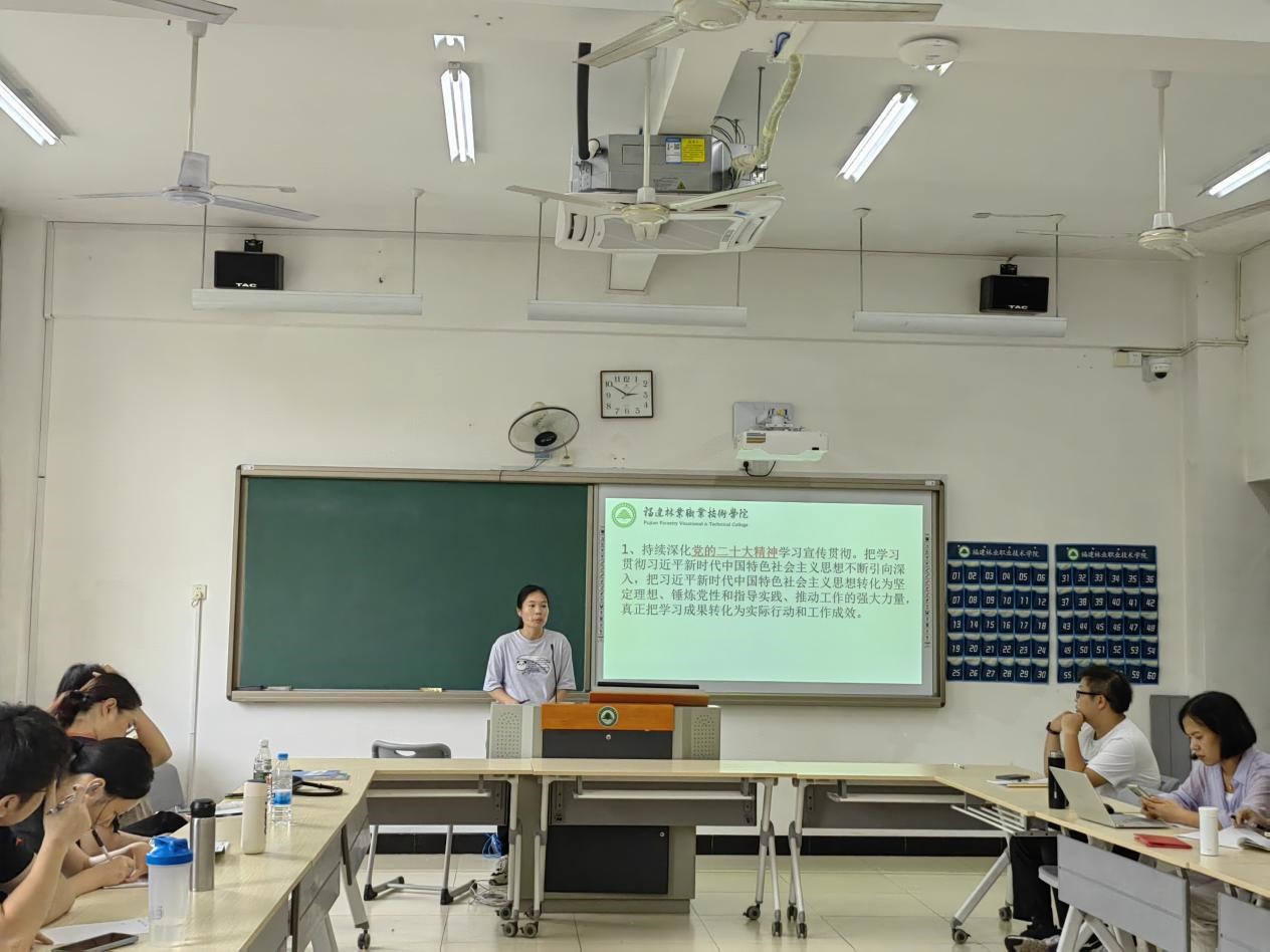 接着,陆晓莉副院长从党建工作、队伍建设、争先创优、科研工作等方面对本学期的工作进行了全面部署,之后就《福建林业职业技术学院思想政治理论课专职教师岗位补贴发放(试行)办法》、《福建林业职业技术学院退出专职思想政治理论课教师队伍实施办法》、《中共福建林业职业技术学院委员会加强学院领导联系思想政治理论课教师的实施办法》等文件精神进行了解读,希望各位老师认真规划本学期的工作,秉持教育初心,担当育人使命。