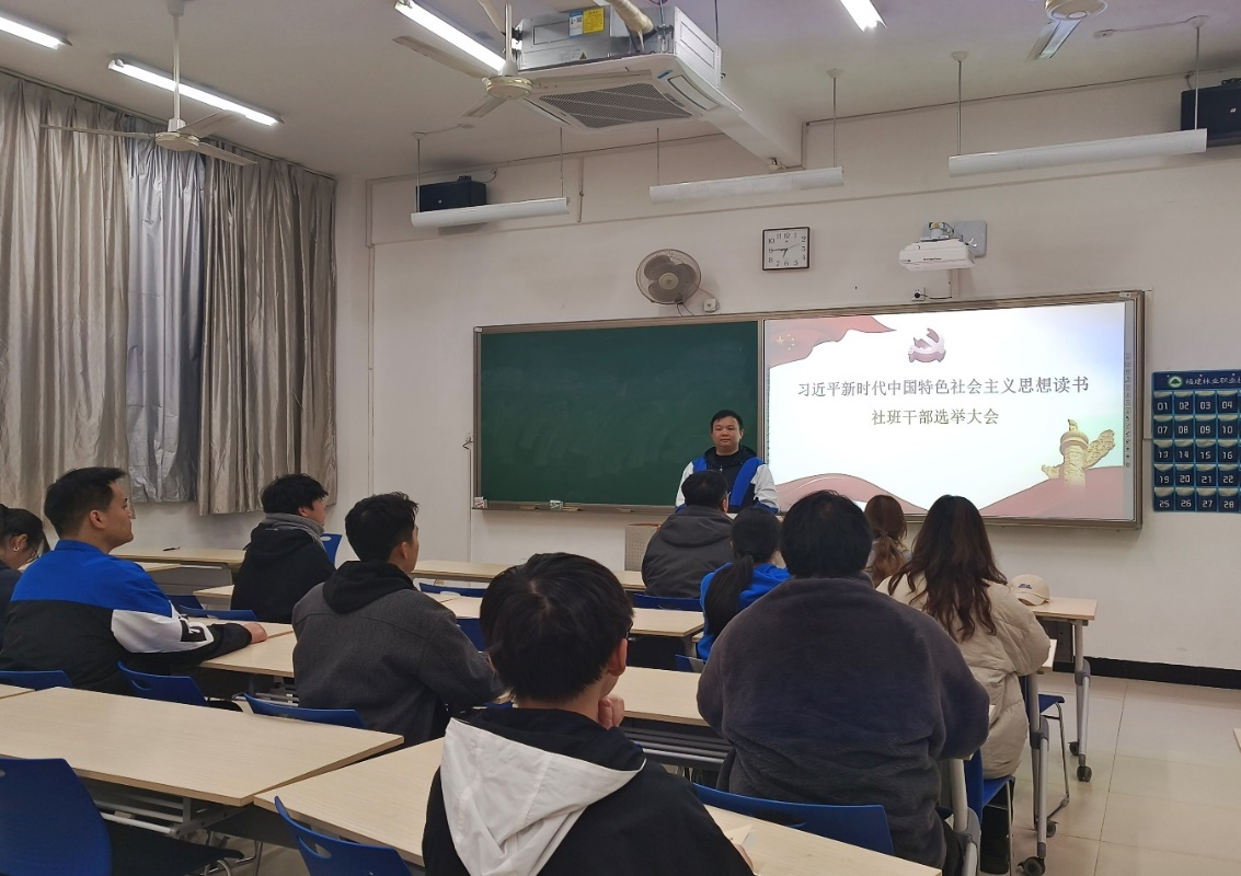 为提高我校习近平新时代中国特色社会主义思想读书社政治理论水平,强化责任担当,培养出一批信仰坚定、能力突出、素质优良、作风过硬的新时代马克思主义模范践行者,12月5日,习近平新时代中国特色社会主义思想读书社班委选举大会在教学楼211举行。读书社全体成员参与,会议由读书社班主任周偎老师主持。